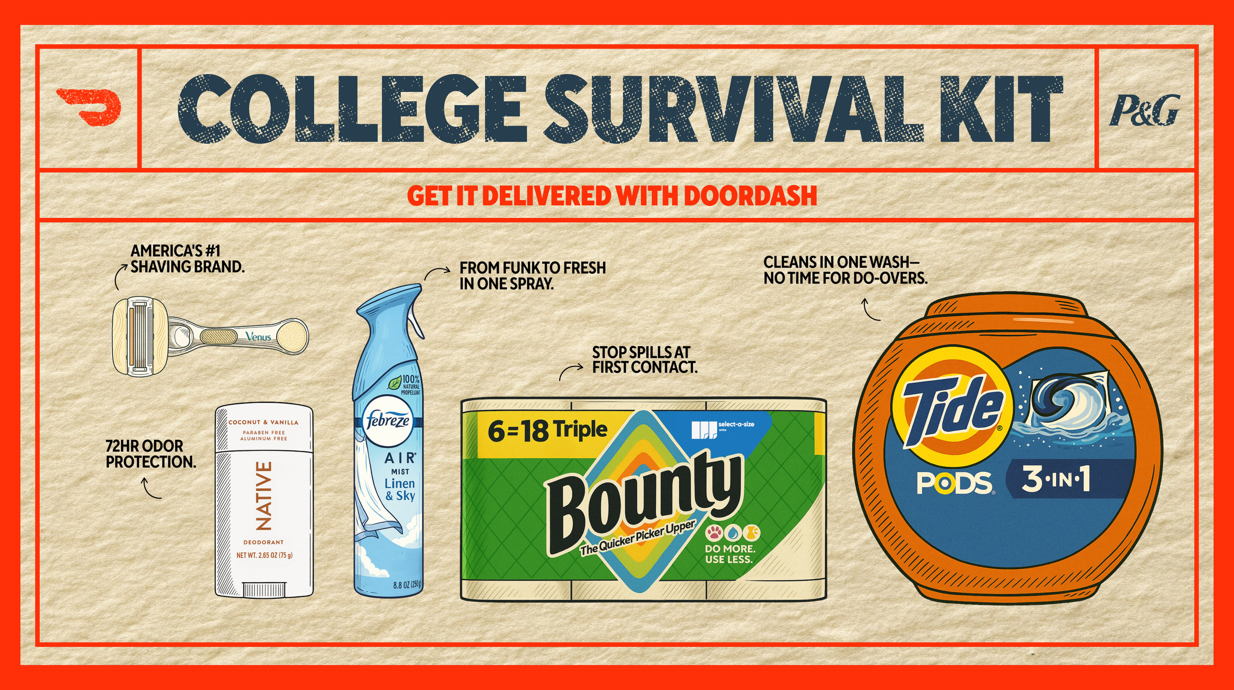 For many students, college is the first time they’re truly on their own, so when they run out of essentials, it can feel like the end of the world. That’s why DoorDash helps students SURVIVE COLLEGE by delivering P&G must-haves straight to their dorm.